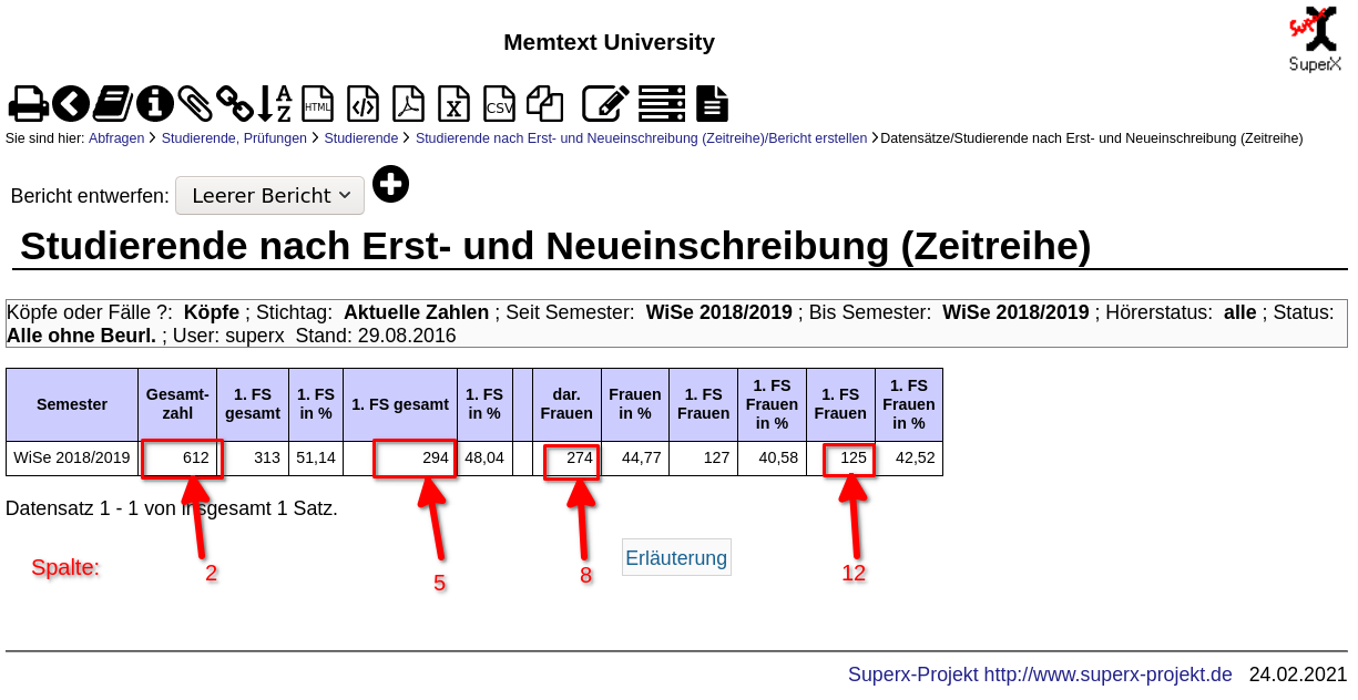 Diese Liste zeigt z.B. dass sich die Staatsangehörigkeit von 0 (Deutsch) in der amtlichen Statistik auf 121 in SuperX geändert hat. Offenbar wurden die Daten zum Stichtag nicht eingefroren.