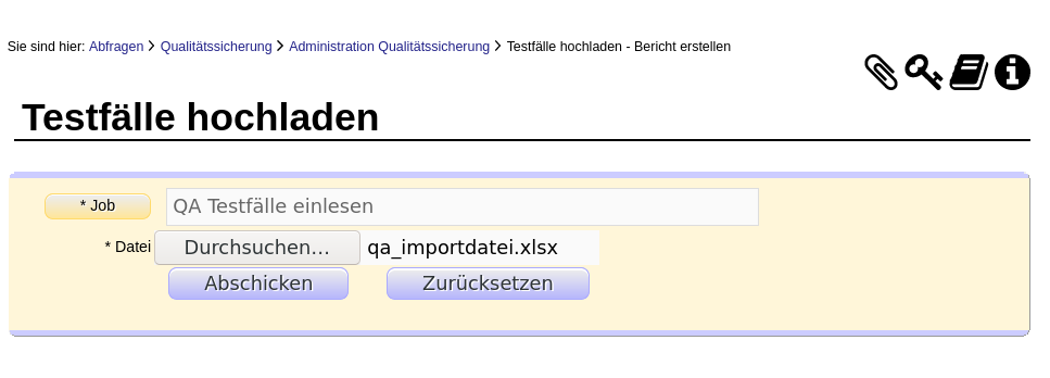 Diese Datei können Sie im Menüpunkt "Qualitätssicherung -> Administration Qualitätssicherung -> Testfälle hochladen" hochladen: