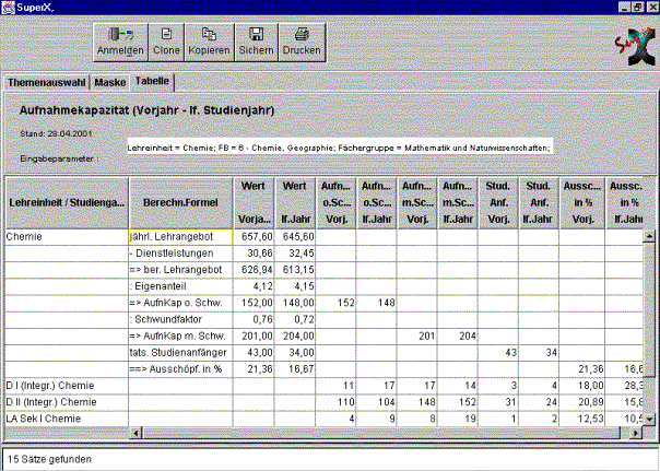 In der 2. Spalte wird diese Zahl noch relativiert um die Schwundquote: Man ermittelt über 5 Semester eine Abbrecherquote für den jeweiligen Studiengang und geht davon aus, dass man die Aufnahmekapazität um diese Quote erhöhen kann, da dieser Prozentsatz der Studenten ja nur für kurze Zeit Leistungen in Anspruch nimmt.